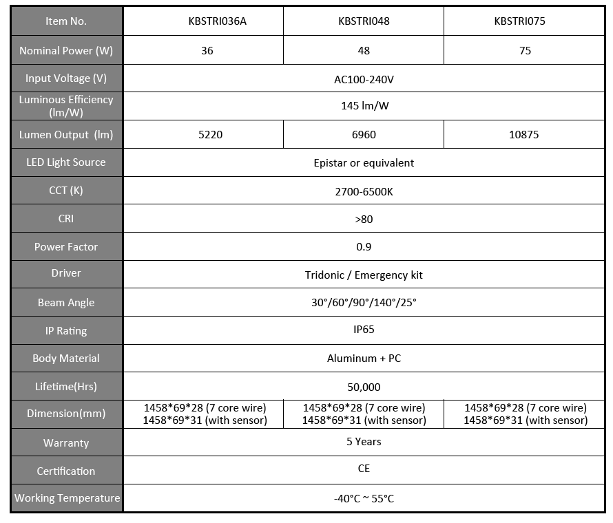·Srail-line system is flexible for warehouse, shopping mall etc, with narrow and wide beam distribution.