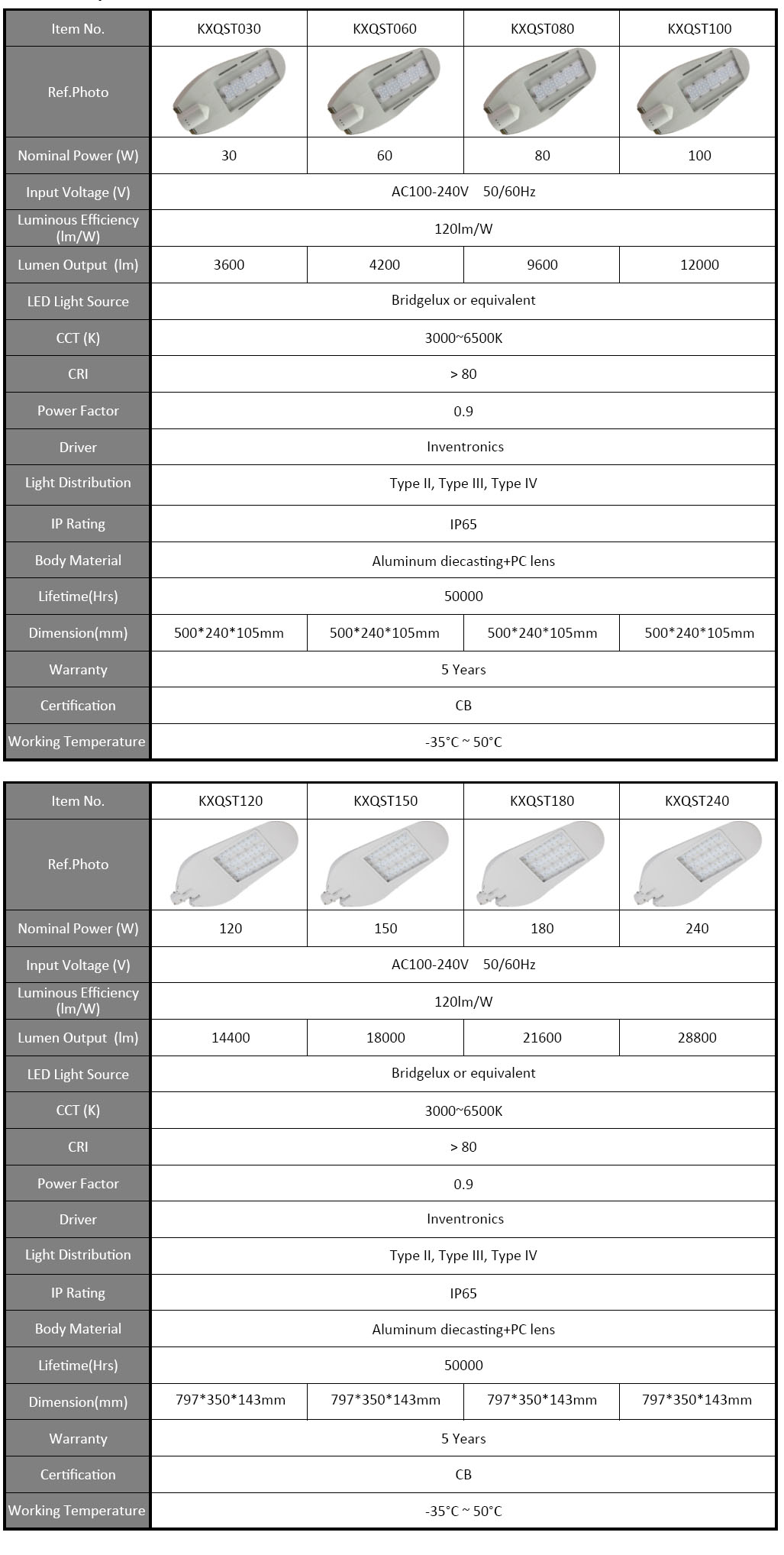 · High luminaire efficiency with 120lm/W.