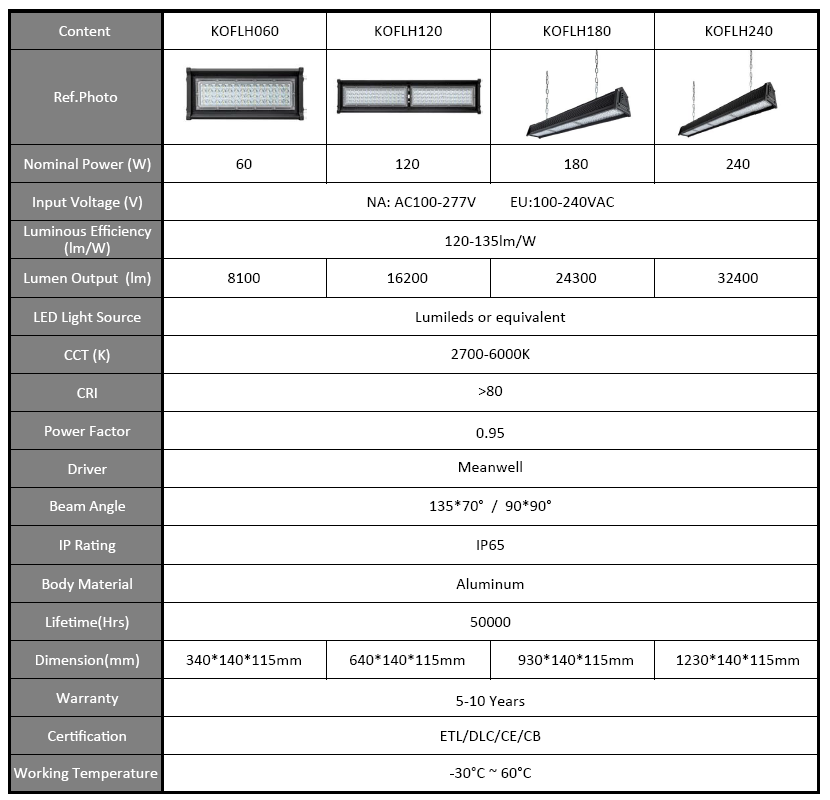 · High luminaire efficiency up to 135lm/W.