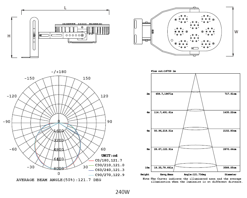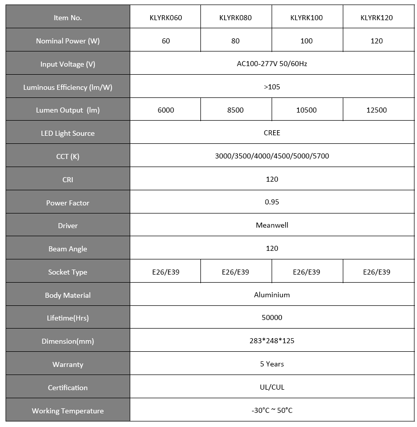 . Wide range of power and lumen output selection,easily replace HID from 150W-250W