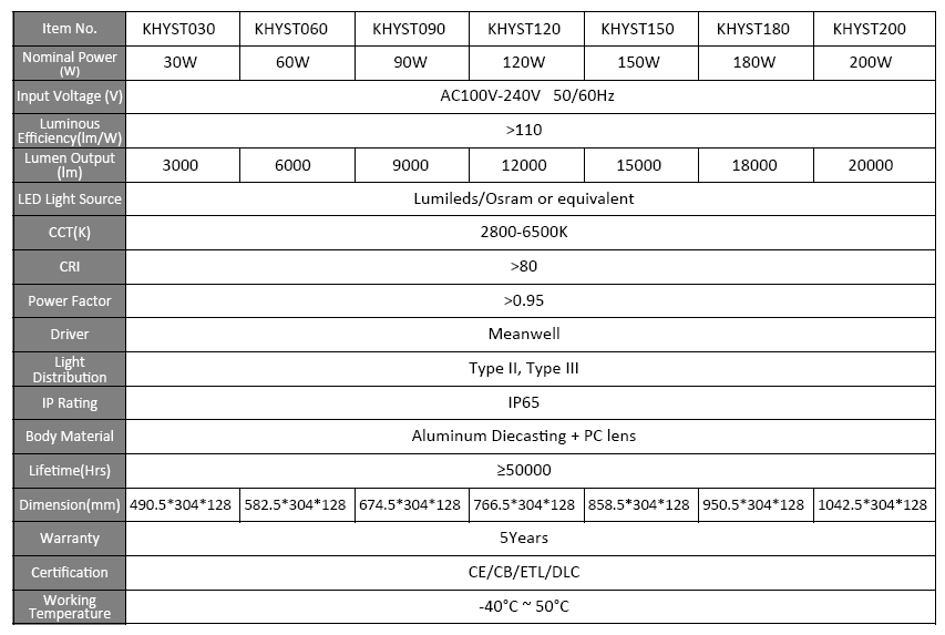 · High cost effective with over 110 lm/W, CRI over 80.