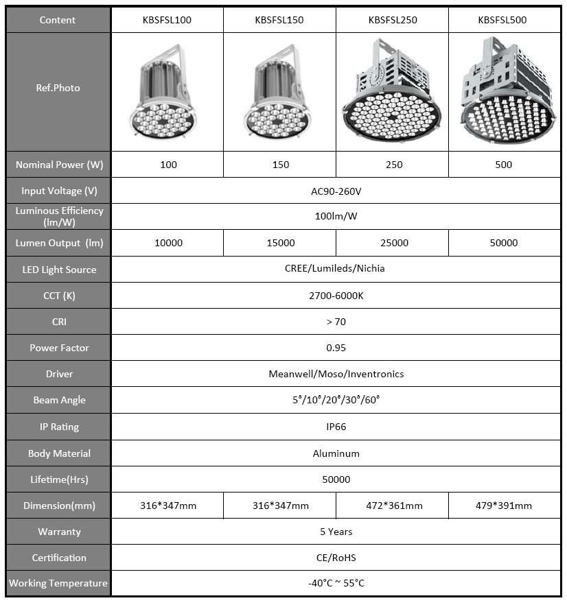 · Low glare optical, 5°, 10°, 20°, 30°, 60° variety light